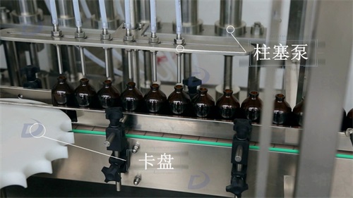 柱塞式計量泵定量灌裝,灌裝針頭設有防滴漏裝置,精度高