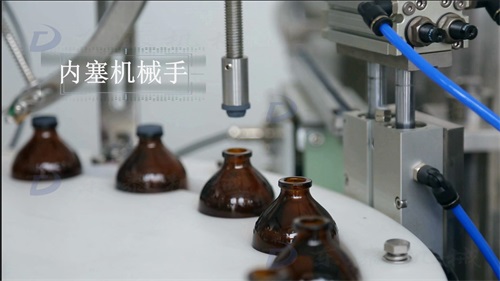 內塞機械手將內塞吸起來,然后精準壓進瓶口