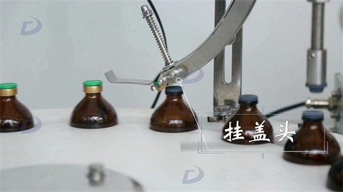 理蓋振動盤將蓋子進行整理,送入滑道,后滑入掛蓋頭