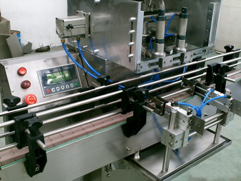 本機與物料接觸均為不銹鋼制作,完全符合GMP標準。快速活接連接,拆洗方便,灌裝量、灌裝速度均可調節,更 換不同規格形狀的瓶子,不需更換零件,調整容易。另灌裝頭設有防滴漏裝置,灌裝無拉絲、滴漏;有瓶灌裝、無瓶不灌裝;設有計數功能,能準確顯示當前產量、 前班產量;并備有自動加料控制接口,實現對加料的自動控制。各動作平穩、準確無誤,是目前較為理想的機電氣一體化產品。(該設備需要配備輔助設備:真空泵,真空儲氣罐)